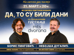Beograd – Glumci Boris Pingović i Nebojša Dugalić danas su na konferenciji za novinare najavili svoj muzičko-poetski kabare pod nazivom „Da, to su bili dani“, koji će se održati 21. marta u MTS dvorani. Ova manifestacija će biti posebna jer se poklapa sa Svetskim danom poezije, što je dodatno obeležava.
